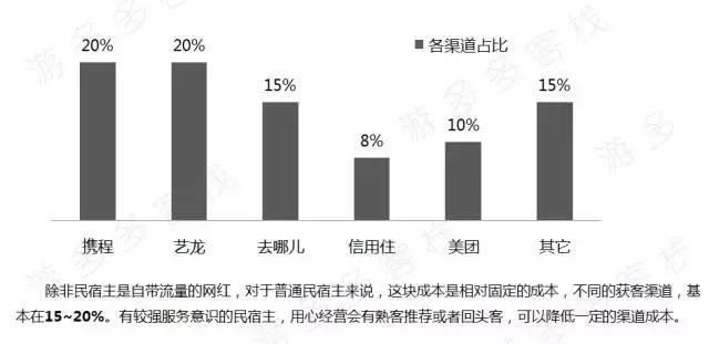 其次,民宿主要利用网络上已有的民宿平台进行资源整合,如2017年途家整合各平台流量,实现八合一,包括途家、蚂蚁短租、携程、艺龙、去哪儿等,实现库存共享,一件管理,大大降低了房东的沟通成本。