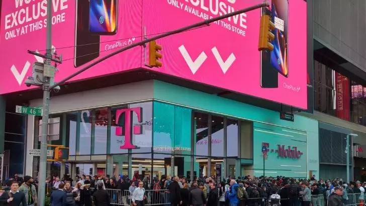 在纽约时代广场,来自中国的手机品牌一加手机再次引发了美国消费者们的排队购买。唯一特殊的是,这是在当地顶级运营商T-Mobile的门店前。