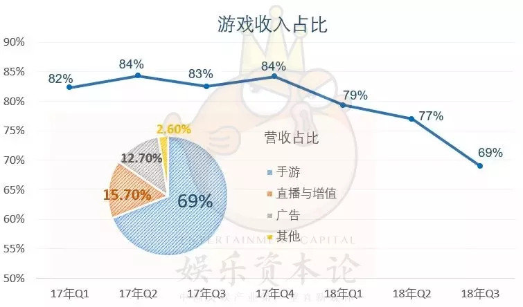 稳步营收多元化:手游占比下滑,直播与广告收入强势