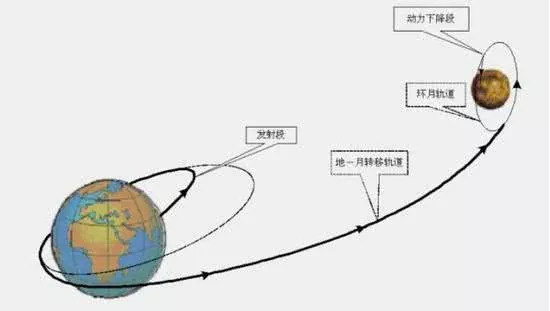 4、抵达月球附近,减速入轨,进入离月面100公里的圆轨道,然后变轨进入近月面15公里的椭圆轨道;