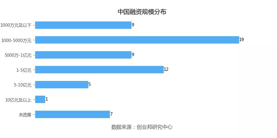 本周融资事件的融资规模主要集中在1000-5000万元,共19起。