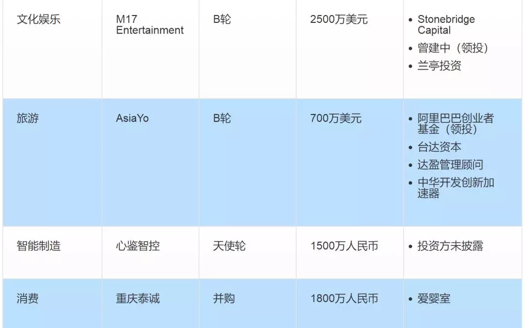 全球投融资周报(2018.11.16-11.22)丨小米生态链公司“摩象科技”完成数千万元融资;零跑科技将完成25亿元A轮融资