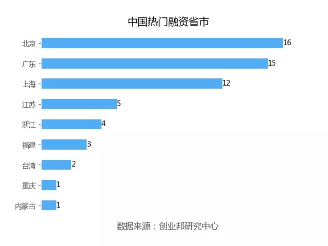 本周融资事件的主要分布在北广上,北广上融资事件共计43起,占比69.35%,除此之外,获得融资较多的省市有江苏。
