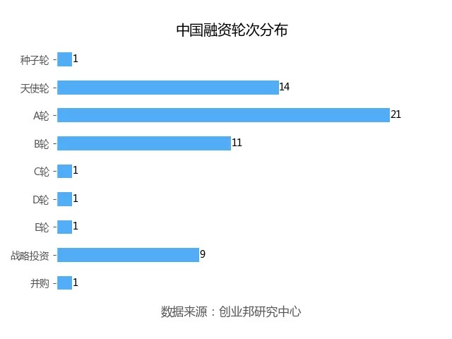 本周融资事件的融资轮次主要集中在A轮、天使轮、 B轮,其中A轮融资事件最多,21起,天使轮次之,14起,B轮第三,11起。