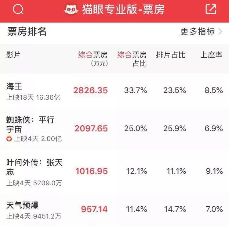 截至写稿时间,《平行宇宙》上映第4天,单日票房被已经上映18天的《海王》反超,从圣诞节的预售情况来看,《平行宇宙》还有一定的票房空间,但《海王》紧随其后。这个情况对于国内观众而言或许并不意外,今年的进口动画电影没有谁打破了动画题材的藩篱。