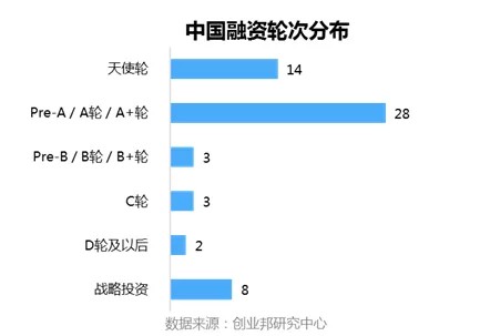 本周融资事件的融资轮次主要集中在A轮、天使轮,其中A轮融资事件最多,28起,天使轮次之,14起,战略投资事件第三,8起。