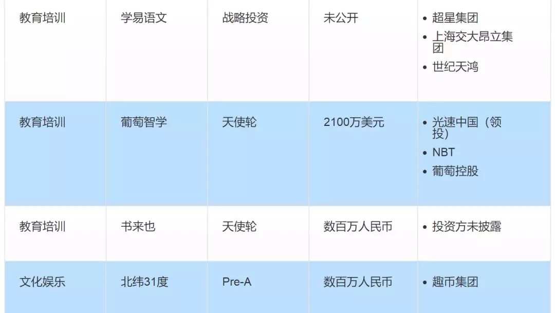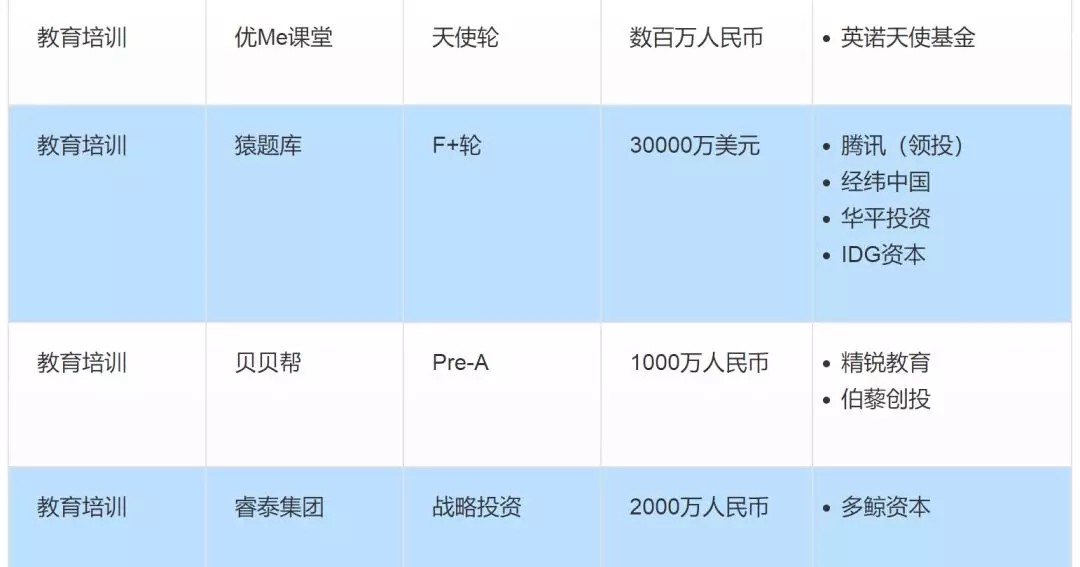 本周融资事件中,单笔融资额过亿的案例主要集中在教育培训领域。