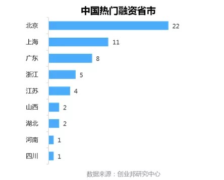 本周融资事件的主要分布在北上广,北上广融资事件共计41起,占比70.69%,除此之外,获得融资较多的省市有浙江。
