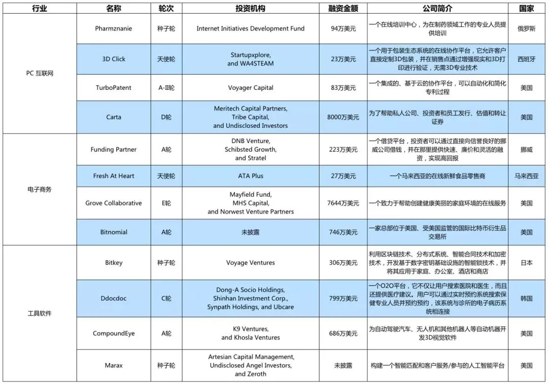 本周海外的投融资事件主要在互联网、电子商务、医疗健康、工具软件等领域。以下为本周值得关注的投融资事件: