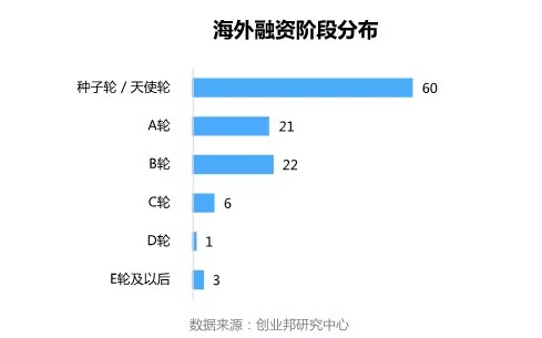 本周国外融资事件的融资轮次主要集中在种子轮/天使轮、B轮及A轮,其中种子轮/天使轮融资事件最多60起;B轮次之,22起;A轮融资事件数量第三,21起。