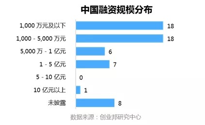 本周融资事件的融资规模主要集中在1000万元及以下和1000-5000万元,各有18起。