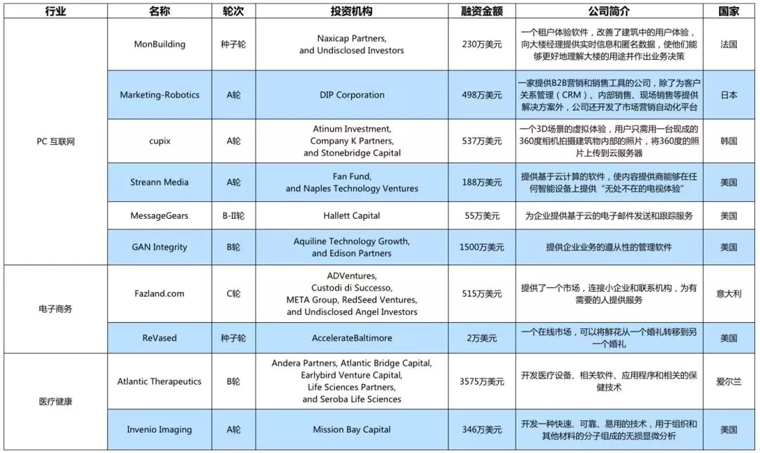 本周海外的投融资事件主要在互联网、电子商务、工具软件、医疗健康等领域。以下为本周值得关注的投融资事件: