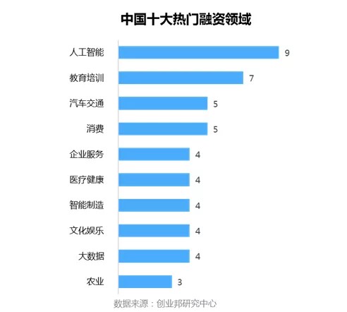 本周披露融资事件涉及20个行业领域,其中融资案例数最多的五大行业分别是:人工智能9起,教育培训7起,汽车交通、消费并列5起,企业服务、医疗健康、智能制造、文化娱乐、大数据并列4起。