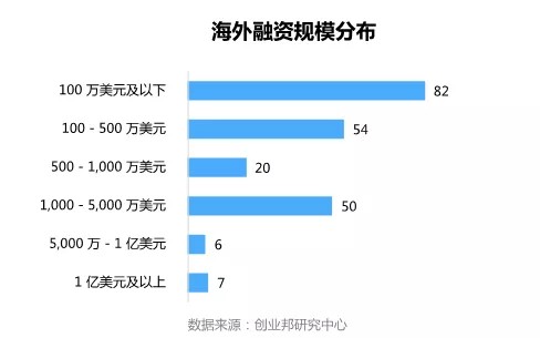 本周国外融资事件的融资规模主要集中在100万美元及以下,共82起。融资额达1亿美元以上的案例有7起。