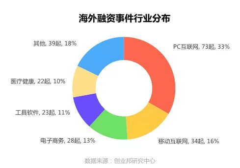 本周披露国外融资事件涉及15个行业领域,其中融资案例数最多的五大行业分别是PC互联网73起,移动互联网34起,电子商务28起,工具软件23起,医疗健康22起。