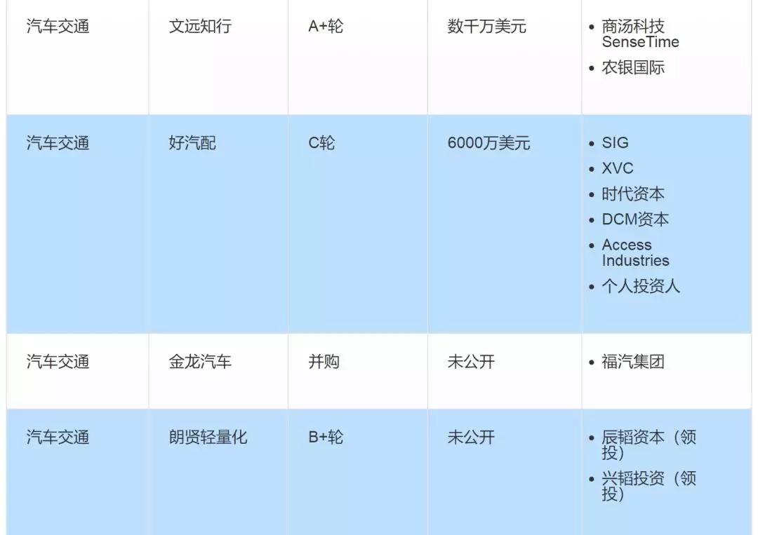 本周融资事件中,单笔融资额过亿的案例主要集中在汽车交通、医疗健康领域。