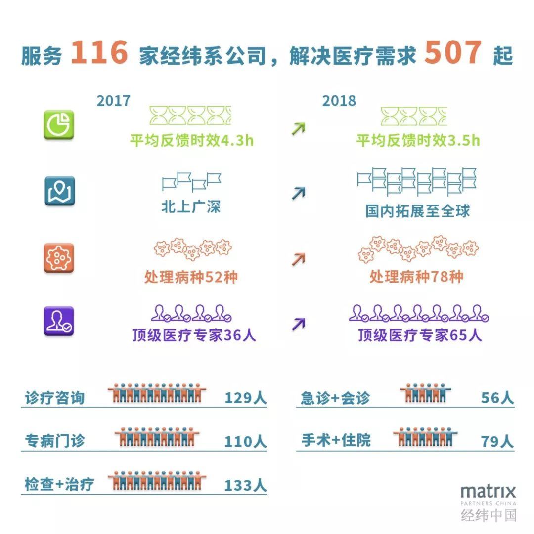 随着经纬系公司的增加,医疗组为了更好的满足经纬系公司创始人及高管的涉外医疗需求,2018年分别访问了日本顶级医疗机构15家、美国顶级医疗机构14家,其中包括医院,体检中心等;建立了由全球顶级医院及专家组成的海外就医绿色通道,为经纬系公司提供更为优质的医疗服务并可满足经纬系全球医疗需求。