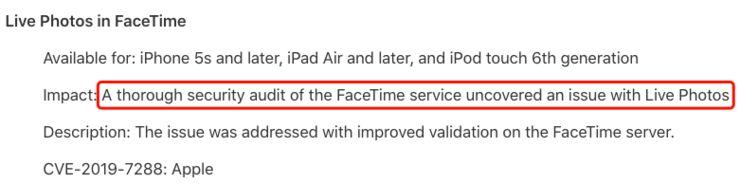 虽然相对此前苹果官宣的一周内解决问题,在时间上存略有出入,但在今日更新系统更新声明中,苹果官方表示,在对FaceTime服务进行彻底的安全审核时还发现了Live Photos的问题,并已经在系统更新后得以解决。