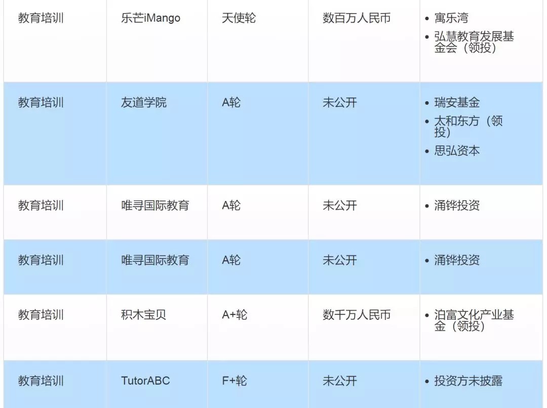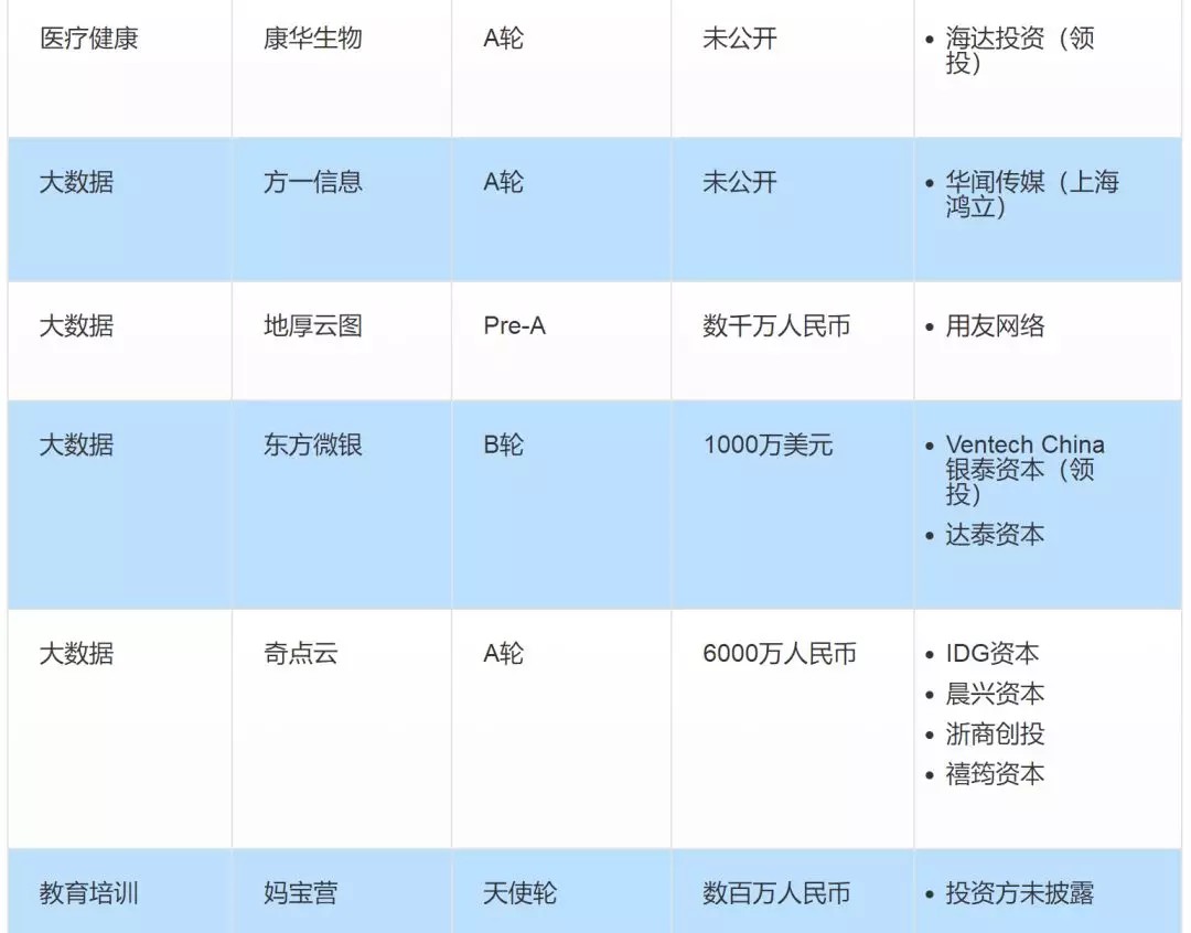 本周国内的投融资事件主要在教育培训、企业服务、医疗健康、大数据、服务等领域。以下为本周值得关注的投融资事件: