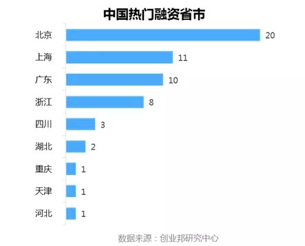 本周融资事件的主要分布在北上广,北上广融资事件共计41起,占比68.33%,除此之外,获得融资较多的省市有浙江。