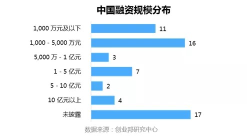 本周融资事件的融资规模主要集中在1000-5000万元,共16起。