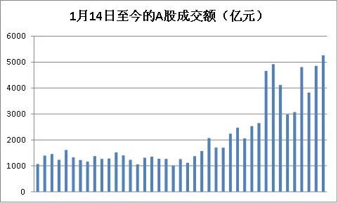 上证指数从2019年1月4日的2440.91点,涨到如今的3106.42点,累计涨幅27.26%。这期间成交量不断的放大,摆一张图更直观: