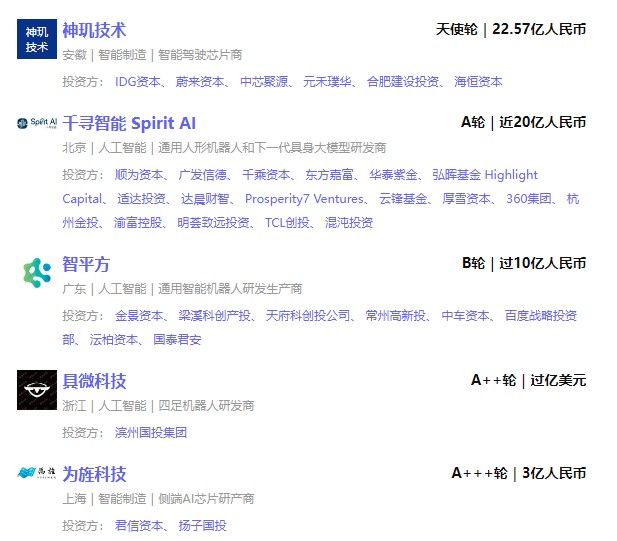 其次是智能制造行业,已披露融资总额为28.57亿元人民币。其中智能驾驶芯片商 「神玑技术」 获22.57亿人民币天使轮融资。
