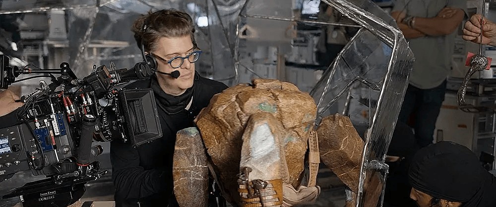 这个没有面部、靠数字模拟的声音交流、外形像蜘蛛和岩石混合体的外星角色,是整部电影的情感核心——也是最容易被做成纯CG角色的那种存在。但导演们坚持Rocky必须是物理存在的。