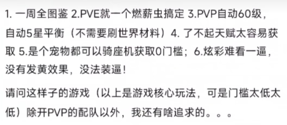 原本抓到精灵就足够让人开心,现在他们学会区分之后,天赋不好的精灵直接会被打成「低等精灵」;原本作为稀有资源的异色,现在也是不赶紧攒钱刷到,就怕被别人跳脸炫耀……结果忙慌地搞完这堆事才发现,他喵的赛季怎么还有四五十天?我玩什么?