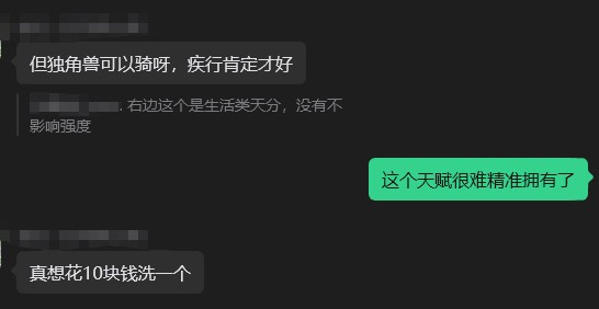 葡萄君的同事也很离谱——他焦虑精灵跑图速度跟不上,发现自己的炫彩独角兽没有疾行词条,就恨不能有个10块钱的付费设计,让他直接洗个特长词条出来。