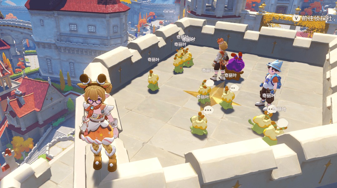 比如你随便去王国区域那个城楼转转,都能刷到有人在上面做「神秘仪式」——带着六个草系精灵,不停对它们鞠躬,就为了刷出植物资源来卖钱,获得远超日常行为收益的金币。这种几乎作弊式的刷金手段,已经成了不少PC端玩家的日常。