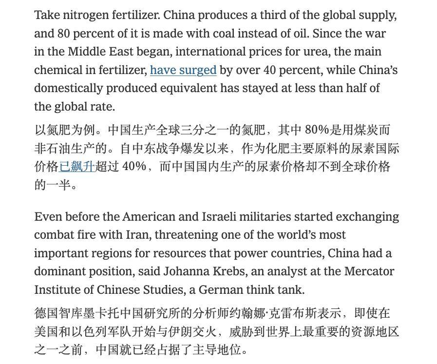 《纽约时报》这两天还专门发了篇文章,标题就是《中东战争引发的能源冲击,中国展现出了韧性》。连西方记者都开始写好评,可见这波国内是真的让不少外国人眼红了。