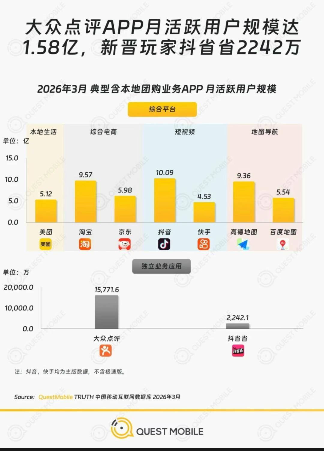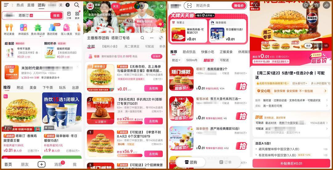 今年2月,团购App「抖省省」正式上线,用户通过抖音账号登录后,主站内的团购订单与收藏店铺可一键同步,并随即推出瑞幸、麦当劳0.01元首单等补贴。3月,「随心团」业务正式升级为「抖音即送」,官方表示这是基于一年多运营中观察到的外卖需求而做出的主动升级。