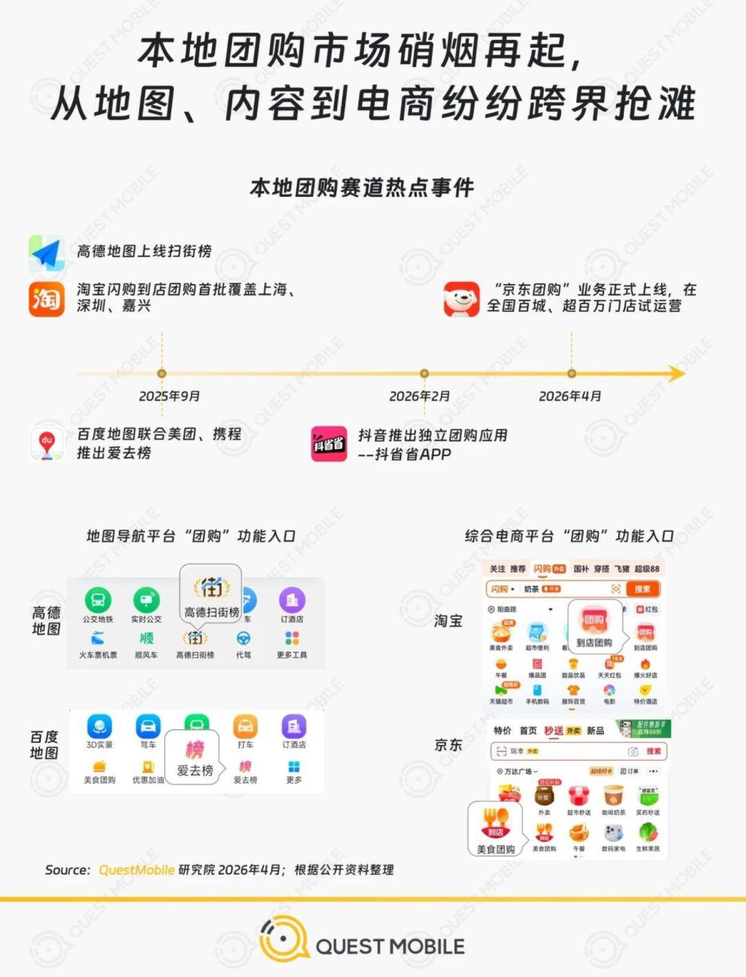 而其中到店的战略意义更显突出。外卖是把餐厅产能延伸到线上,到店团购则是平台直接介入消费者的线下行为本身。谁掌握了到店流量,谁就掌握了门店客流的分配权——这是对消费意愿更深层的渗透,也是为什么外卖打得再凶,没有一家平台愿意在到店上真正松手。阿里闪购加码到店业务、高德上线「扫街榜」、京东在独立外卖App时同步上线「京东点评」,每一家都没法对这块地方真的视而不见。
