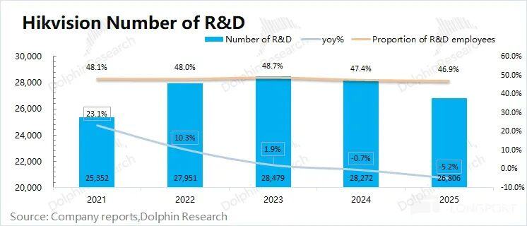 在经营面承压的情况下,公司进行了裁员、降费等操作。在 2025 年公司员工总数裁减了 2479 人,近十年来首次减少。至 2025 年末,研发人员下降至 2.68 万人,年内裁减了 1466 人。