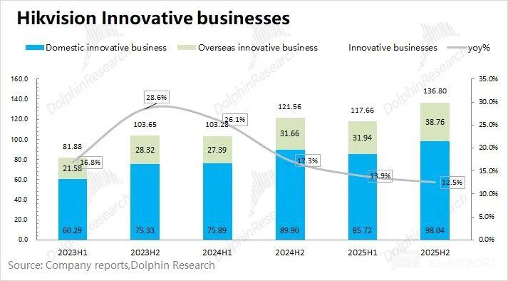 ②在境外的创新业务中,海康威视 2025 年下半年实现营收 39 亿元,同比增长 22%。