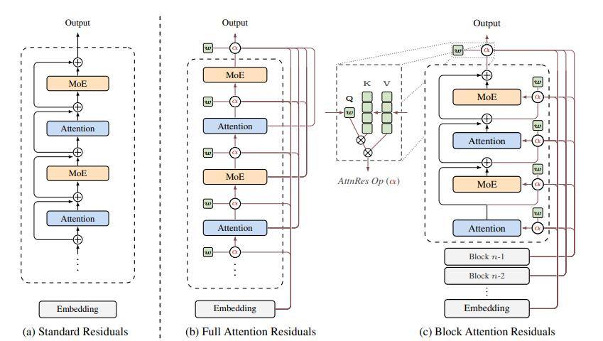 Kimi 提出的 Attention Residuals(注意力残差)优化了信息流的传递效率,提升了模型的表现。这一创新得到了广泛的认可,Andrej Karpathy 点评称「我们对《Attention is All You Need》的理解还不够」,OpenAI 推理之父 Jerry Tworek 点评称「我们应该重新思考一切,深度学习的2.0时代正在到来」,马斯克也在社交媒体上为此点赞,称是「令人印象深刻的研究」。